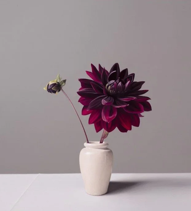 Still Life with Dahlias and Stoneware Pot (Oil on Canvas)